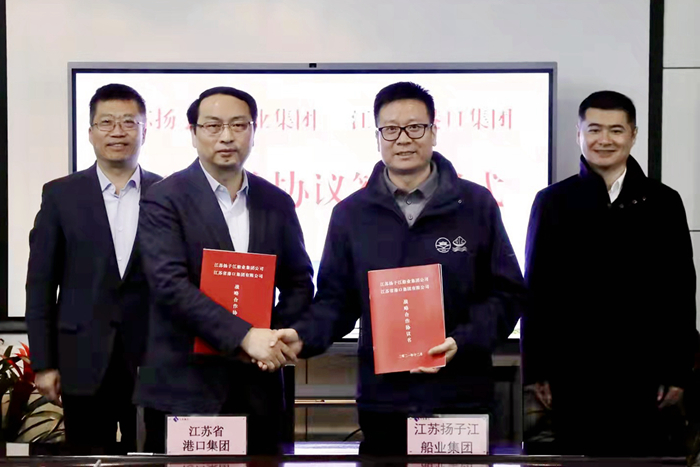 12月21日,揚(yáng)子江船業(yè)集團(tuán)與江蘇省港口集團(tuán)有限公司戰(zhàn)略合作協(xié)議簽訂儀式在南京下關(guān)大廈舉行。江蘇省港口集團(tuán)有限公司副總經(jīng)理譚瑞兵先生,我集團(tuán)副董事長(zhǎng)張宏飛先生代表雙方簽署了戰(zhàn)略合作協(xié)議。江蘇省港口集團(tuán)黨委副書記、總經(jīng)理關(guān)永健先生,我集團(tuán)董事長(zhǎng)兼總經(jīng)理任樂天先生,江蘇蘇港航務(wù)工程有限公司執(zhí)行董事金志忠先生等嘉賓共同見證。