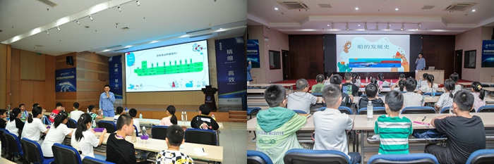 公司組織安排了“船人課堂”,為孩子更好地揭秘、解惑:新?lián)P子造船焊接工藝科科長錢曉強(qiáng)、揚(yáng)子鑫福造船檢驗(yàn)科張磊科長、分段車間姜海軍分別為孩子們上了一節(jié)《萬噸巨輪大揭秘》課程。老師們運(yùn)用視頻展播、課堂實(shí)驗(yàn)等直觀的體驗(yàn),深入淺出地揭開大船的奧秘,為孩子們帶來了一堂生動(dòng)的船舶知識(shí)普及課,孩子們積極互動(dòng)、主動(dòng)回答。靖江實(shí)驗(yàn)學(xué)校孫老師給孩子們帶來一堂生動(dòng)有趣的趣味英語課堂《Home is best!》,讓孩子們感受到了課堂之外英語的獨(dú)特魅力。