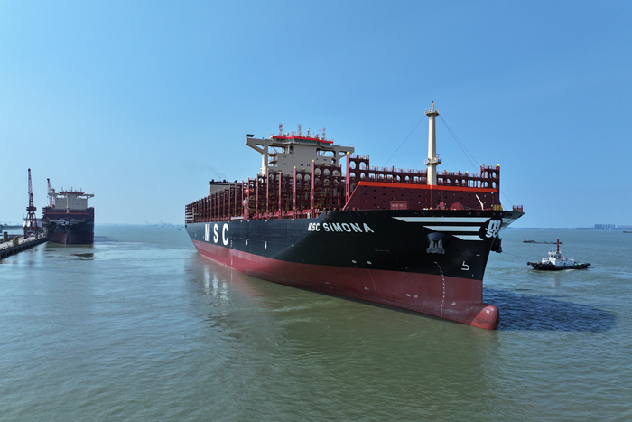 8月31日下午,我集團揚子鑫福造船為SEASPAN、MSC船東建造的第九艘16000TEU集裝箱船——“MSC SIMONA”輪交付離廠,上線MSC船隊運營。