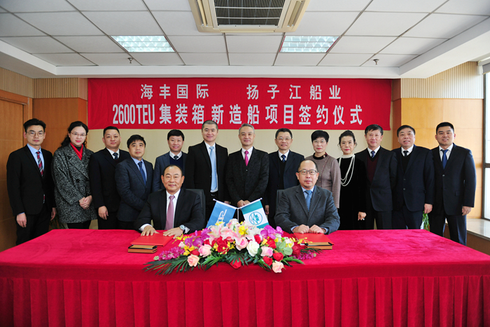 我集團(tuán)與海豐國際本年度第三次合作,12月19日,雙方共同簽署6+2+2艘2600TEU集裝箱新造船建造合同。集團(tuán)董事長任樂天先生,集團(tuán)副總經(jīng)理杜成忠先生、張濤先生,海豐國際董事局副主席兼首席執(zhí)行官楊現(xiàn)祥先生攜夫人,海豐航運(yùn)集團(tuán)副總裁肖森元先生,上海海事大學(xué)校長陸靖先生,上海海事大學(xué)商船學(xué)院黨委書記曹紅奮女士,上海海事大學(xué)商船學(xué)院院長肖英杰先生,上海船舶研究設(shè)計(jì)院院長呂智勇先生等共同見證新訂單成功簽約。