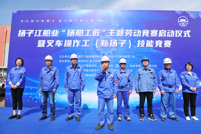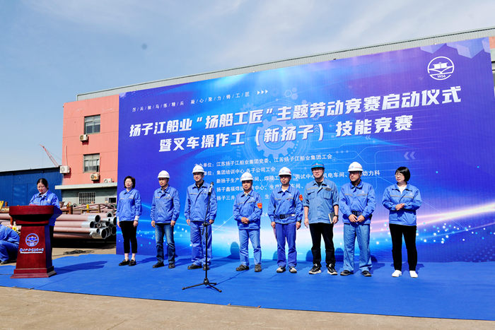 4月24日,揚(yáng)子江船業(yè)“揚(yáng)船工匠”主題勞動(dòng)競賽啟動(dòng)儀式暨叉車操作工(新?lián)P子)技能競賽在新?lián)P子造船舉行。集團(tuán)副總經(jīng)理兼新?lián)P子造船總經(jīng)理杜成忠,新?lián)P子造船副總經(jīng)理倪榮,新?lián)P子造船總經(jīng)理助理茆宏兆,揚(yáng)子鑫福造船總經(jīng)理助理劉銀君,集團(tuán)技術(shù)中心技術(shù)部部長蔣才平,新?lián)P子質(zhì)量管理部部長唐松,揚(yáng)子鑫福造船工會(huì)主席陳紅,揚(yáng)子三井造船工會(huì)主席司凌鈺,以及各造船子公司相關(guān)承辦車間部門領(lǐng)導(dǎo)、參賽職工代表和裁判員代表等參加啟動(dòng)儀式。