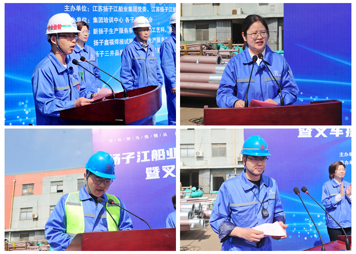 啟動(dòng)儀式上,新?lián)P子造船副總經(jīng)理倪榮代表公司作致辭;新?lián)P子造船工會(huì)主席周黎黎代表組委會(huì)宣讀了本次勞動(dòng)競賽方案和競賽考評(píng)細(xì)則;員工代表朱楠作承諾發(fā)言;裁判代表李勁松宣誓發(fā)言。集團(tuán)副總經(jīng)理兼新?lián)P子造船總經(jīng)理杜成忠宣布勞動(dòng)競賽啟動(dòng)。