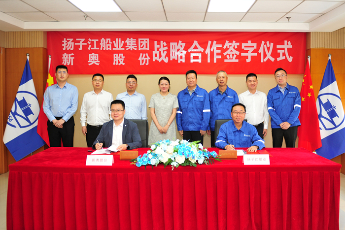 5月26日,揚子江船業(yè)集團(tuán)與新奧股份正式簽署戰(zhàn)略合作協(xié)議。雙方旨在圍繞LNG(液化天然氣)產(chǎn)業(yè)鏈展開深度合作,共同探索清潔能源領(lǐng)域的創(chuàng)新應(yīng)用與市場機遇。簽約儀式在我集團(tuán)舉行。揚子江LNG接收站項目部總經(jīng)理劉兵與新奧股份天然氣貿(mào)易江蘇區(qū)域公司總經(jīng)理左振江代表雙方簽約。揚子江船業(yè)集團(tuán)副董事長兼LNG能源事業(yè)部董事長張宏飛、新奧股份常務(wù)副總裁蘇莉等出席見證簽約儀式。